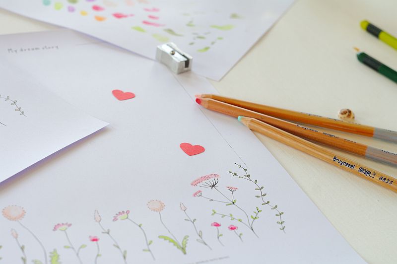 Make your story beautiful! If you are using one of my black and white templates, get your coloured pencils or markers out and colour the little illustrations. Add  extra details if you feel like it; draw and doodle around your story to make it happy and colourful. Of course you can also create your own illustrations :) There are no rules apart from this guiding principle: the happier and more beautiful your story looks to you, the easier it will be to get excited and inspired when you read your story.